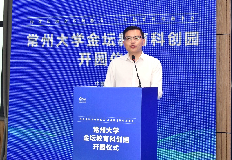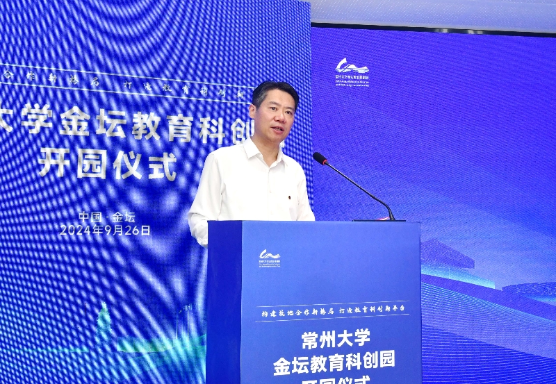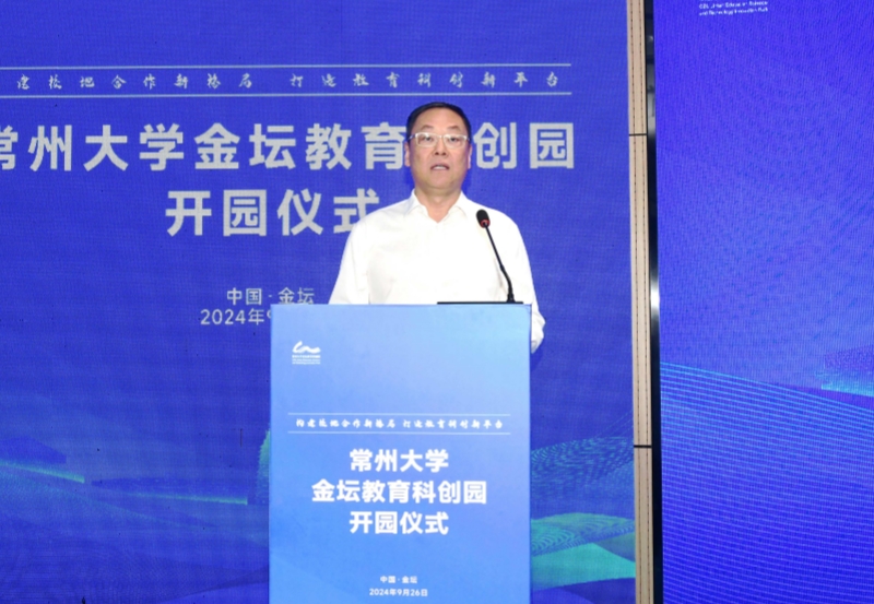 陈海群代表学校对常州大学金坛教育科创园正式开业表示热烈祝贺,同时对金坛区委、区政府以及相关合作单位长期以来对学校的关心、支持和帮助表示衷心地感谢。他表示,学校将充分发挥“教育、科技、人才”一体化优势,与金坛区一道建设合成生物产业生态圈,助力金坛打造合成生物产业创新高地。他要求,常州大学金坛教育科创园要聚焦“大学+产业+园区”融合发展,立足金坛优势产业,持续深化科教融汇、产教融合,将“教育科创园”的“发展之势”加速成为“竞争之能”,助力金坛打造创新创业创造高地。他希望,学校与金坛要切实打通双方合作的需求端、资源端,全力做好协议落地的“后半篇文章”,全力支持建设“资源集聚优、科创板块优、配套服务优、生态环境优”的“四优”园区。